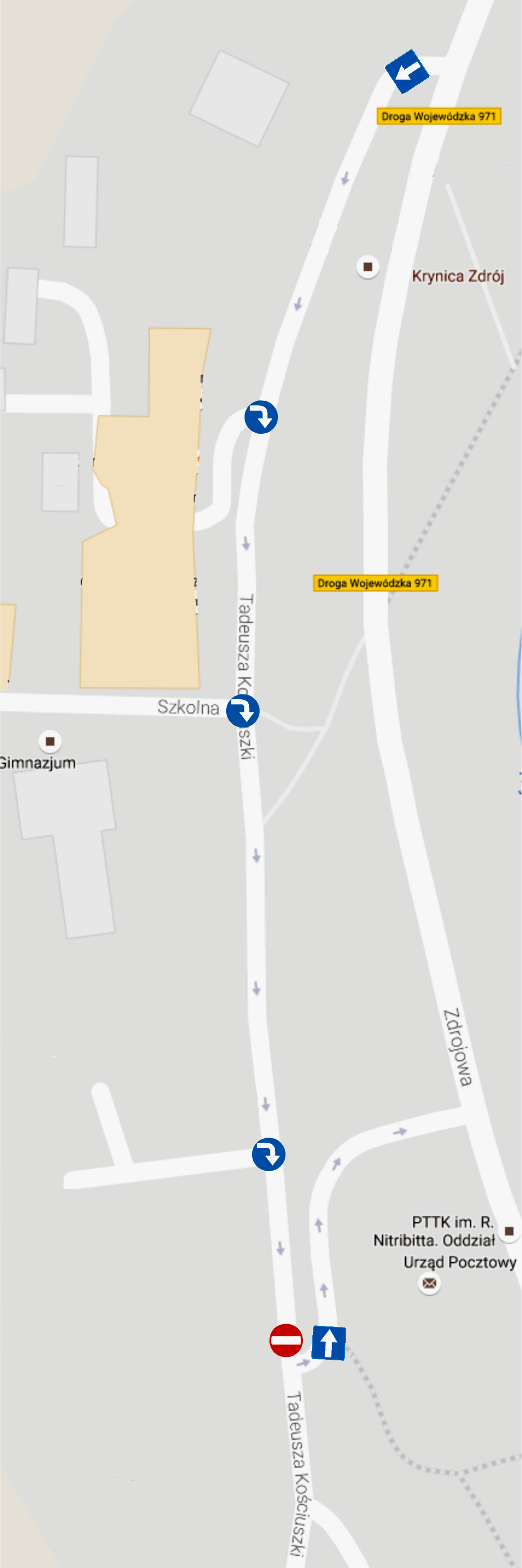 Zmiana polegać będzie na wprowadzeniu ruchu jednokierunkowego na odcinku od skrzyżowania z ulicą Zdrojową do budynku poczty.