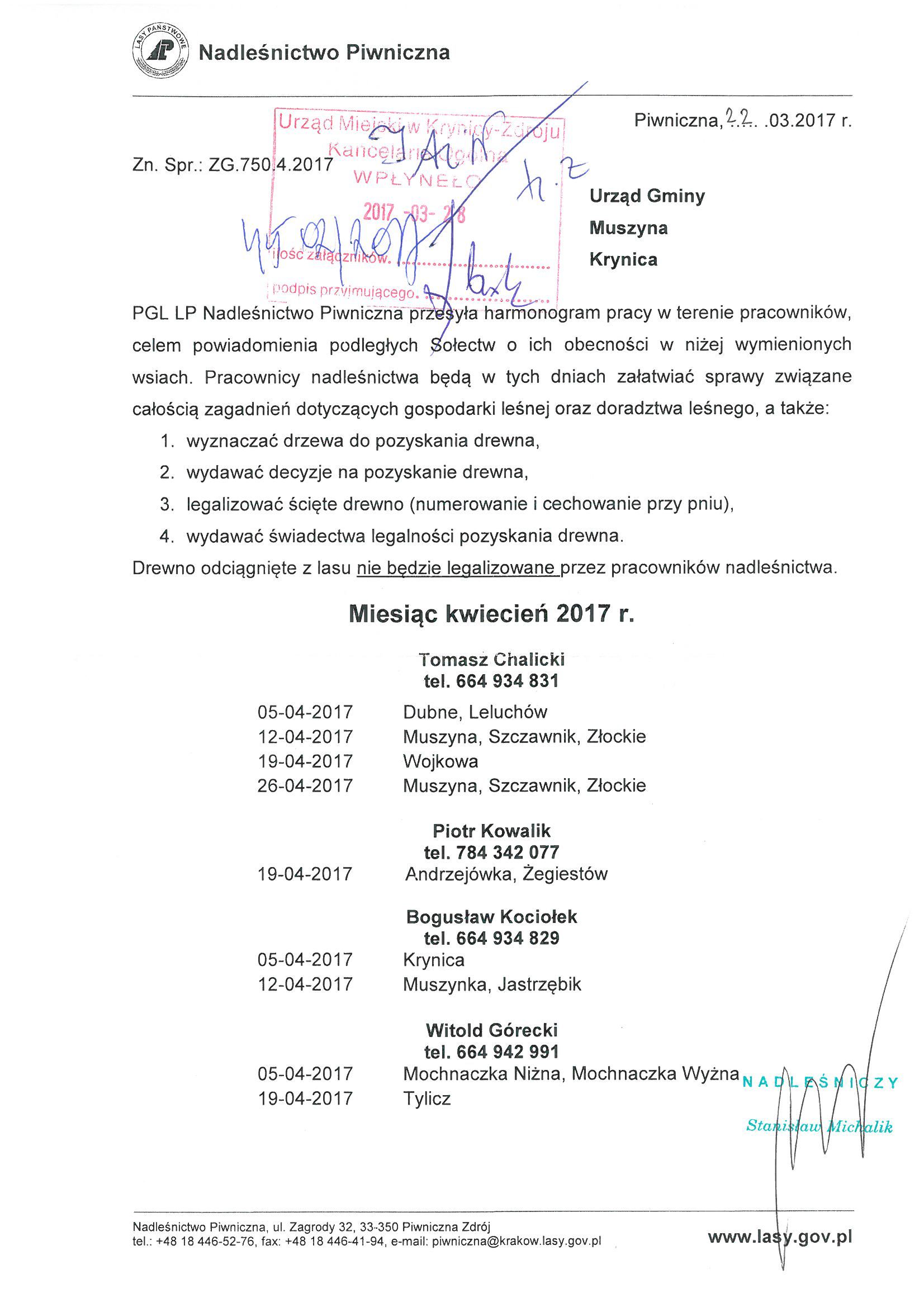 Harmonogram pracy pracowników Nadleśnictwa Piwniczna 30.03.2017 13:22 Treść Facebook Twitter Email Drukuj
