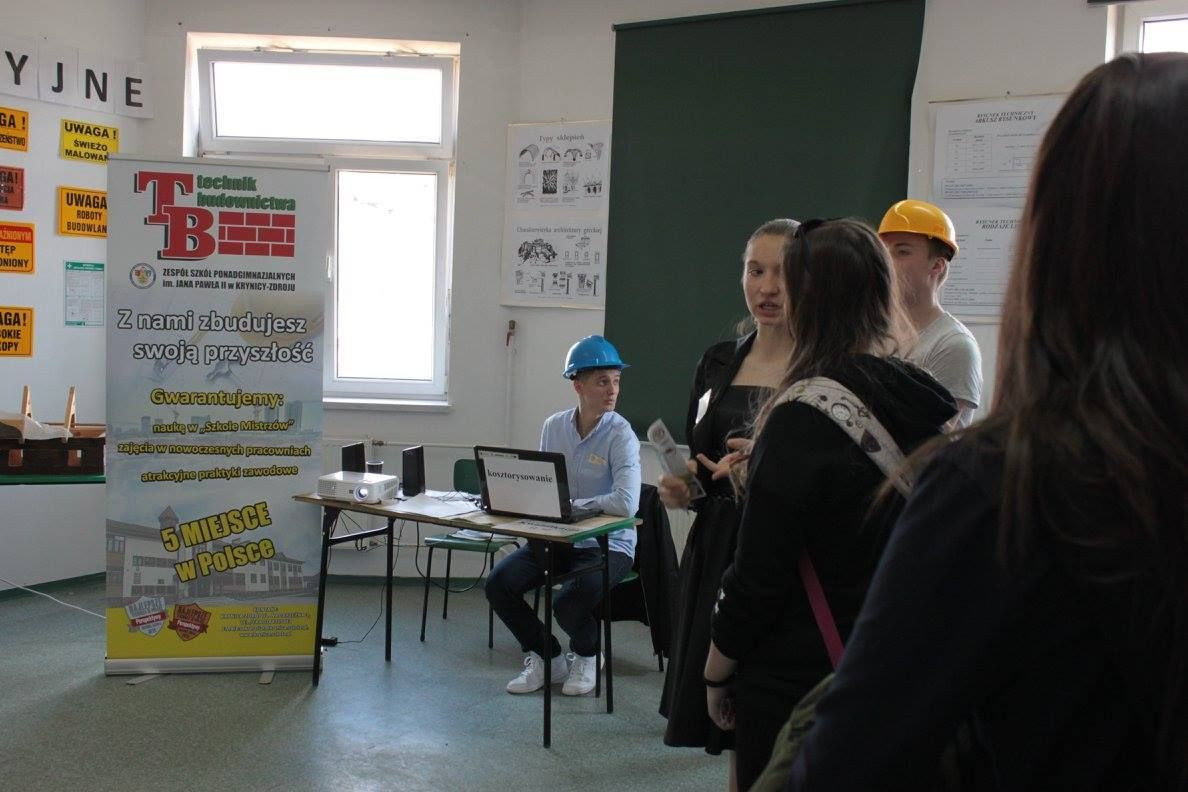 Budowlańcy zaproponowali gimnazjalistom naukę w elitarnej „Szkole Mistrzów”, zaprezentowali zawodowe pokazy, m.in. kosztorysowania w programie Norma Pro, czy nadzoru budowlanego; pokazali specjalną pracownię betoniarsko-zbrojarską, rysunku technicznego i kosztorysowania oraz pracownię ogólnobudowlaną.