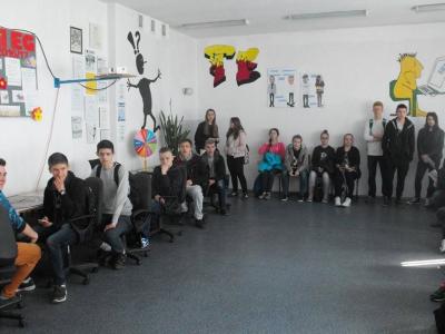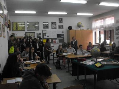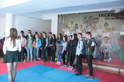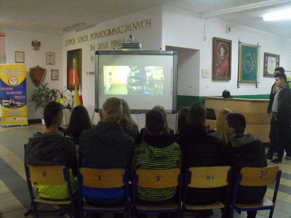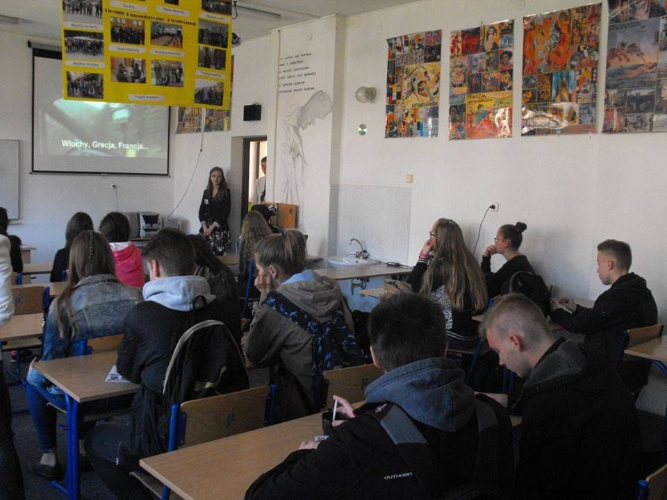 Szkolny Klub Erasmus zaprezentował gimnazjalistom dwa projekty unijne: "No Frontiers in Education", który jest realizowany wraz Rumunią, Norwegią i I LO z Nowego Sącza oraz "Think Different, Do Together" tworzony z Francją, Włochami i Grecją. Zademonstrowano prezentacje, filmy i zdjęcia z wyjazdów oraz wspólnych projektów.