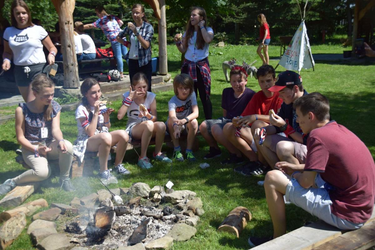 Uczestnicy campu mieli także okazję brać udział w zajęciach plenerowych w Tyliczu, gdzie urządzono ognisko i konfrontowano zwyczaje polskie i amerykańskie.