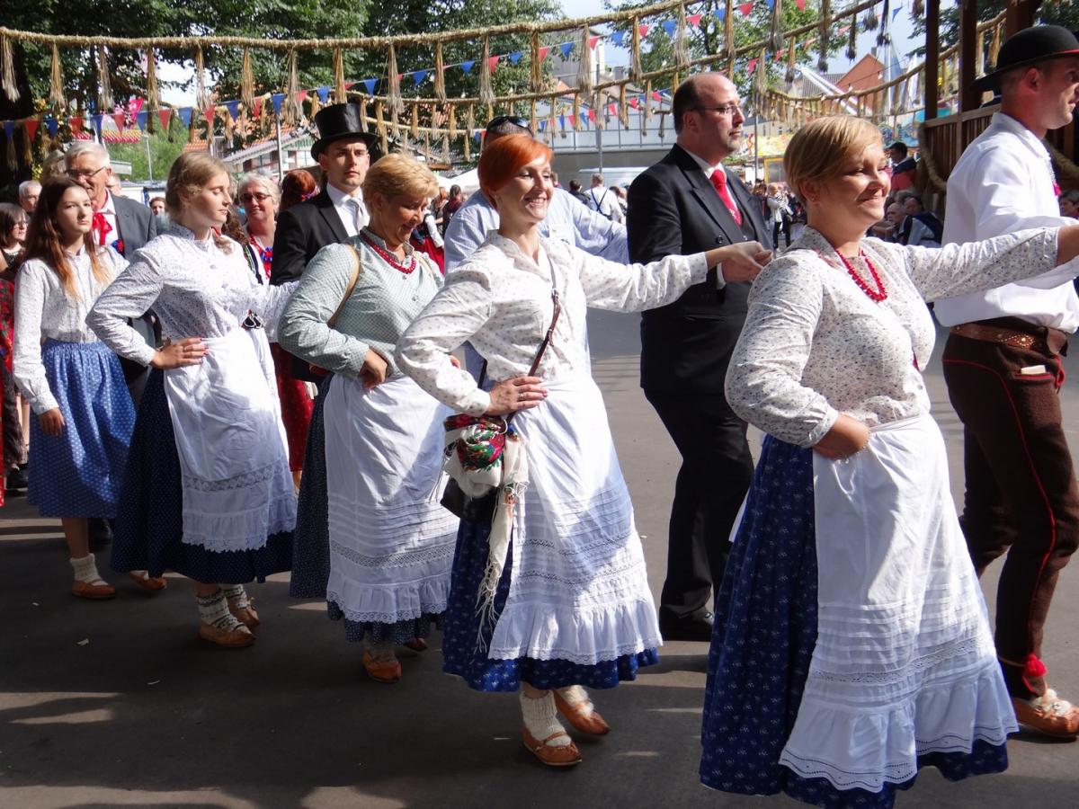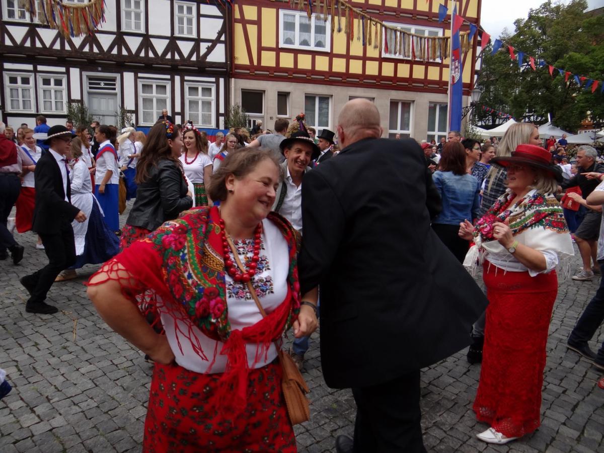 Erntefest - Święto Plonów rozpoczęło się w sobotę 19.08.2017. Po oficjalnym otwarciu, w centralnym punkcie miasta, na rynku, wystąpił zespół „Pogranicze” z Tylicza. Zaprezentowane przez zespół w dwóch występach muzyka, taniec i śpiew wzbudziły zachwyt i aplauz licznie zgromadzonych widzów. Tańczono i śpiewano na bis. Zespól z Tylicza zaprezentował się również pięknie na uroczystym, dożynkowym nabożeństwie ekumenicznym w kościele St.Crucis.