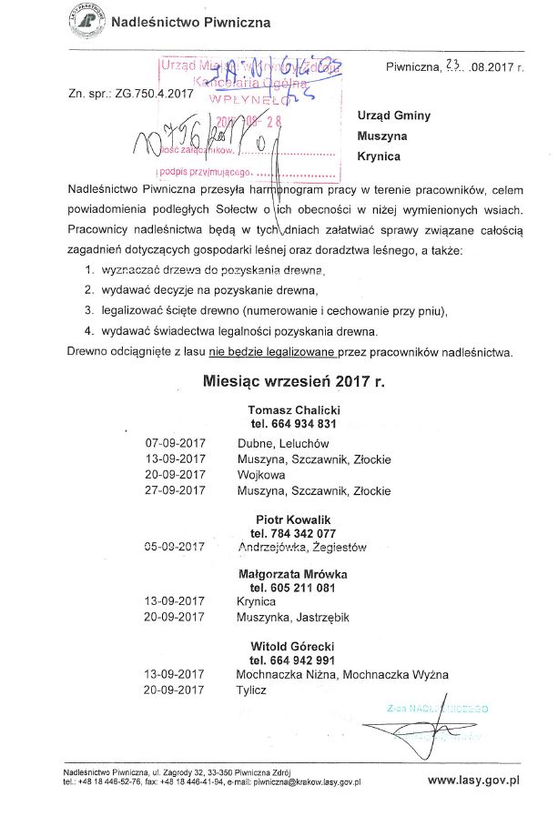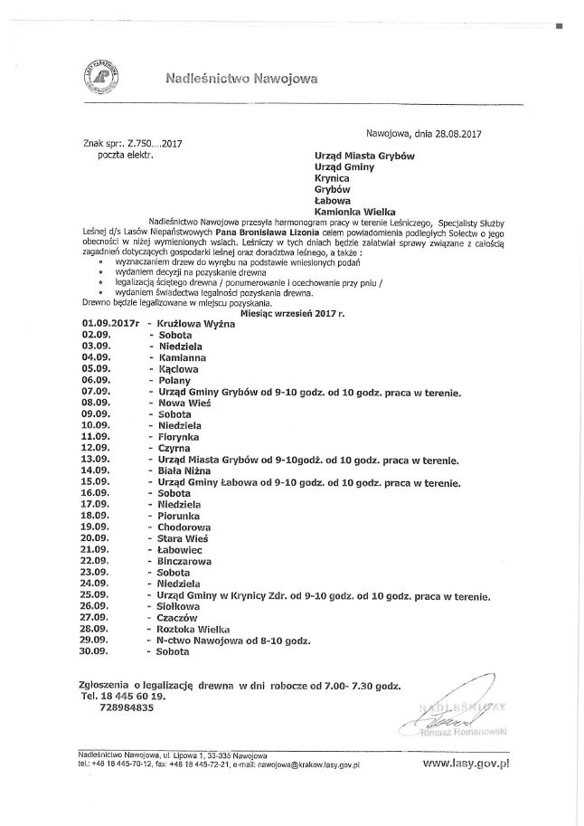Harmonogram pracy pracowników Nadleśnictwa Nawojowa i Piwniczna 29.08.2017 15:09 Treść Facebook Twitter Email Drukuj