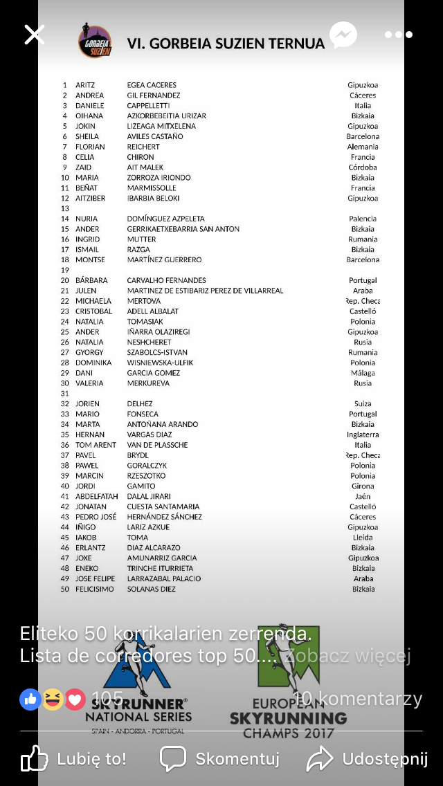 Organizatorzy 24 godziny temu opublikowali listę elity, na której znalazła się część naszych reprezentantów: Paweł Góralczyk, Marcin Rzeszótko, Dominika Wiśniewska-Ulfik, Natalia Tomasiak. Kłopot w tym, że lista elity wynosi niemal 50 nazwisk i trudno jednoznacznie wskazać faworytów. Jak zawsze, na zawodach rozgrywanych we Włoszech czy Hiszpanii można się spodziewać również kilku szerzej nieznanych, lokalnych biegaczy, którzy jednak swoja postawą w zawodach potrafią wywrócić klasyfikację do góry nogami.