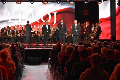 Po zakończeniu obchodów na krynickim deptaku w sali balowej Starego Domu Zdrojowego rozpoczął się koncert pieśni patriotycznych w wykonaniu Zespół Kryniccy Seniorzy.