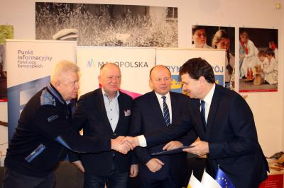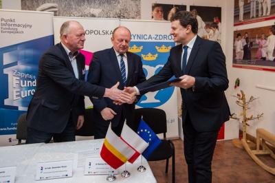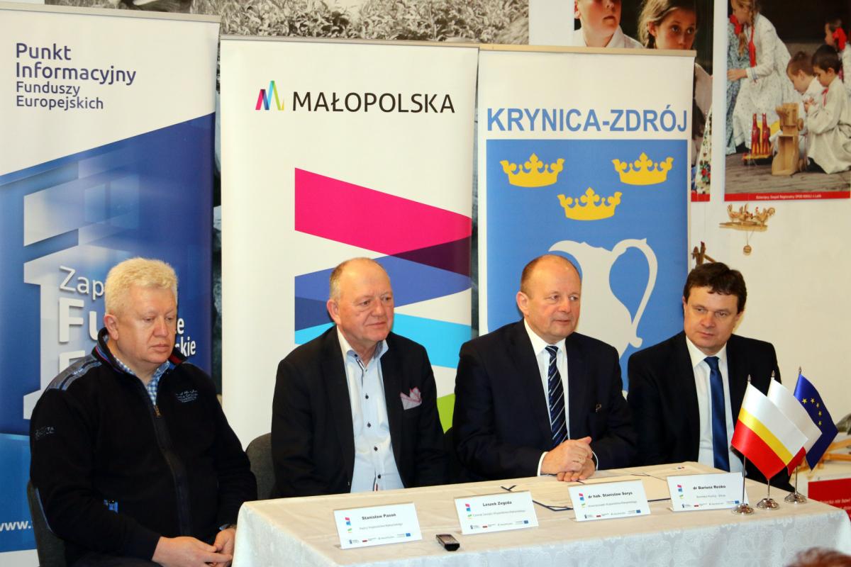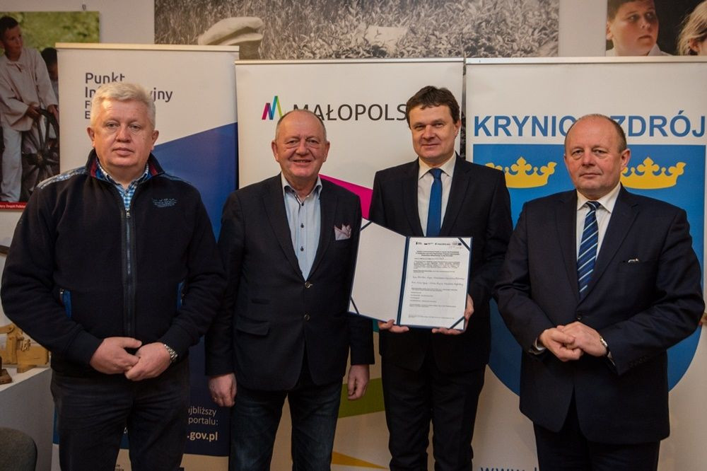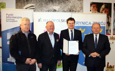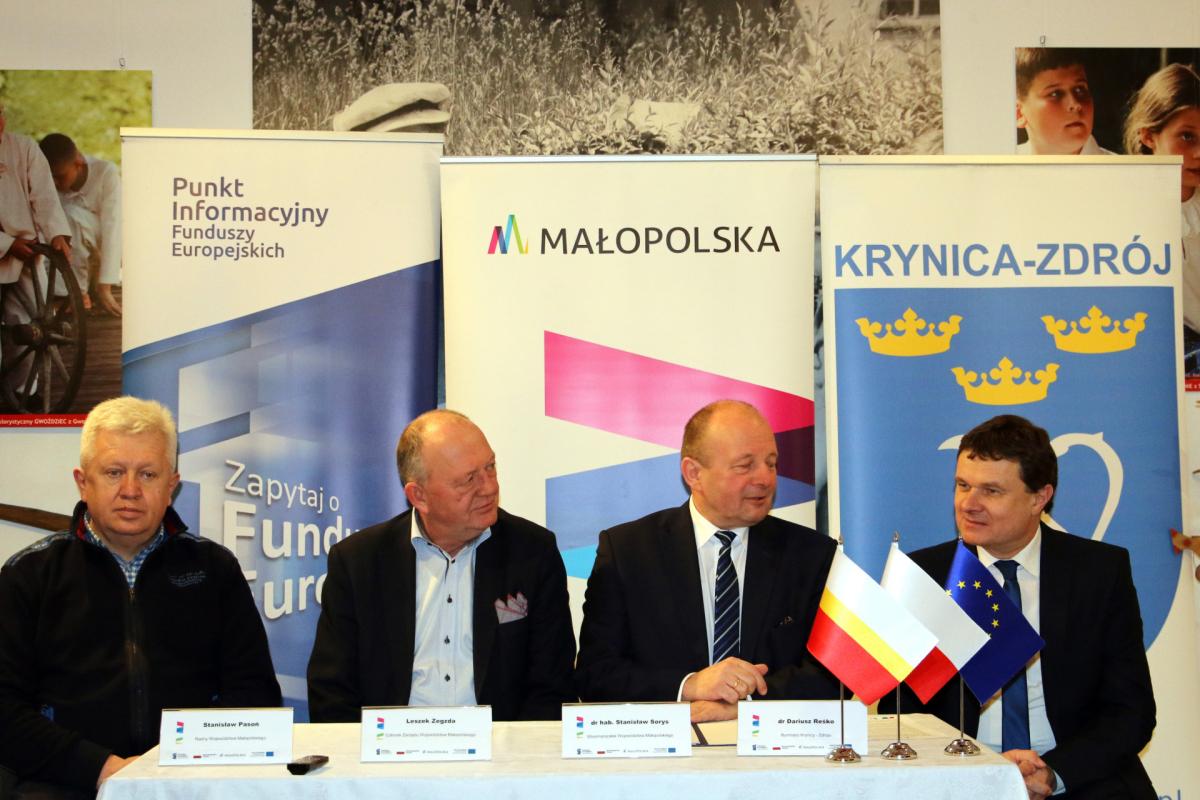 Umowę gwarantującą dofinansowanie z Regionalnego Programu Operacyjnego Województwa Małopolskiego na lata 2014-2020 na ręce burmistrza Krynicy-Zdrój Dariusza Raśko przekazali: Stanisław Sorys – wicemarszałek województwa małopolskiego oraz Leszek Zegzda z zarządu województwa. W wydarzeniu wziął udział również radny województwa – Stanisław Pasoń.