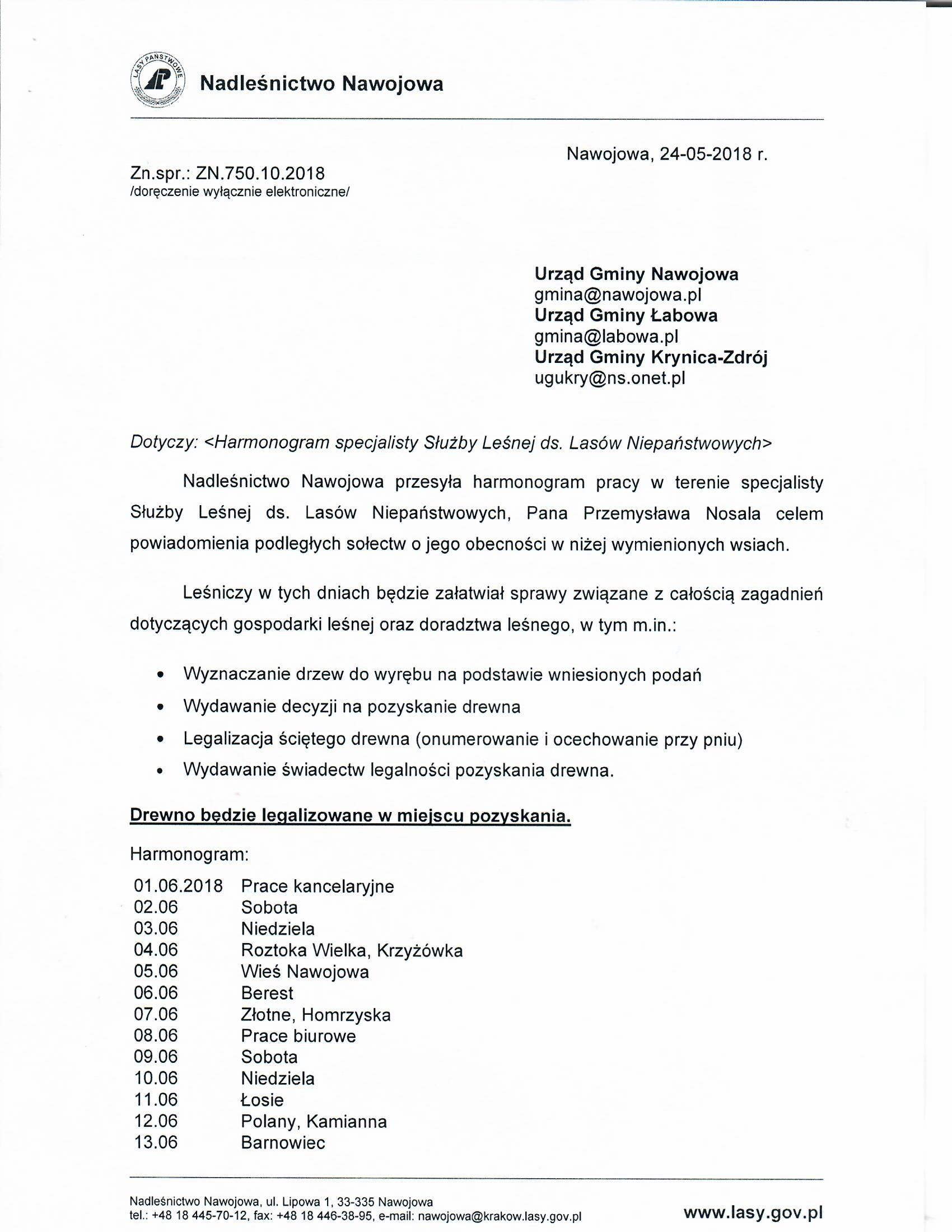 Harmonogram pracy pracowników Nadleśnictwa Nawojowa 29.05.2018 9:22 Treść Facebook Twitter Email Drukuj