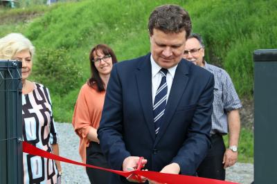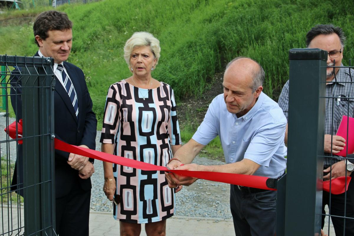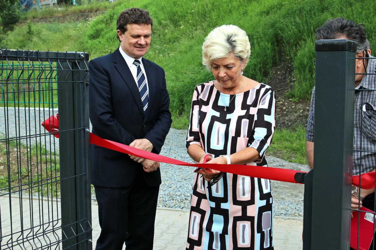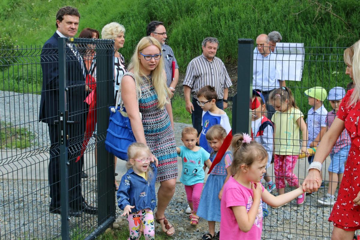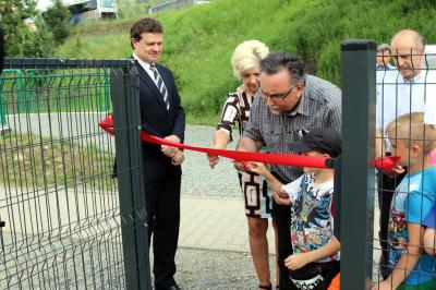 Otwarcia placu zabaw dokonali przedstawiciele Zarządu Osiedla Centrum na czele z Ireną Weber-Grelecką przewodniczącą zarządu, radni miejscy Henryk Wiewióra i Bogdan Bębenek, Krzysztof Kępski prezes Niepublicznego Przedszkola Przystań oraz Dariusz Reśko Burmistrz Krynicy-Zdroju.