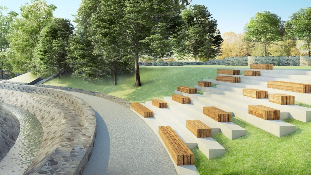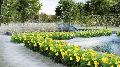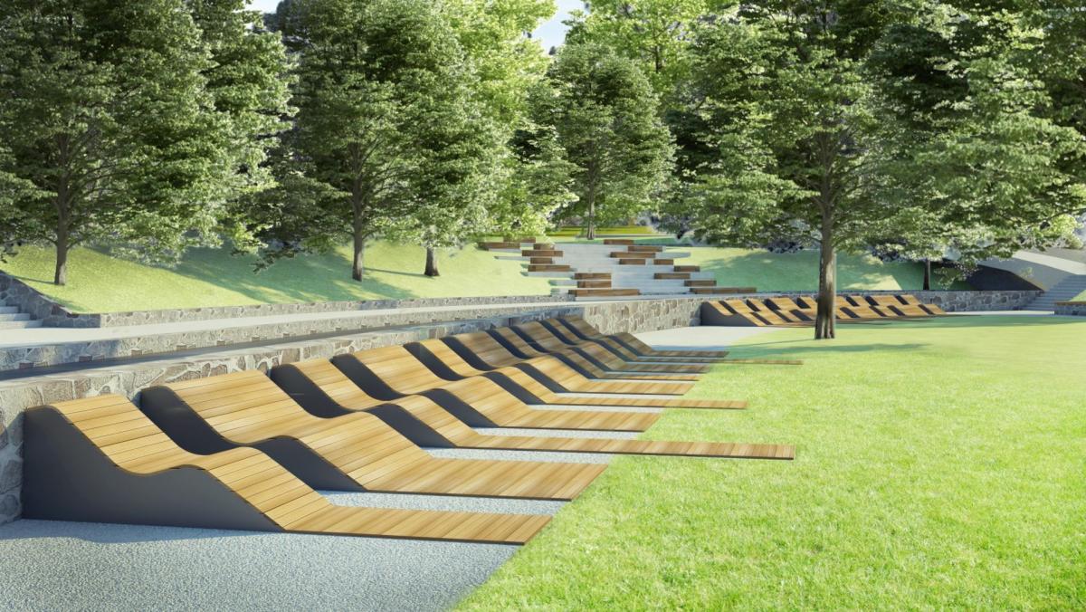 Zmodernizowane zostaną elementy małej architektury i wyposażenia parku (m.in. fontanny, które zyskają nowoczesną formę - w tym możliwość korzystania z nich, jako formy placu wodnego), a przestrzeń parkowa zostanie uzupełniona o nowe atrakcyjne elementy, takie jak schody terenowe z siedziskami oraz leżakami. Kompleksowej modernizacji poddane zostanie oświetlenie parkowe, a nasadzenia zieleni pozwolą stworzyć nowe aranżacje istniejących wnętrz parkowych. Zmodernizowana i rozbudowana zostanie publiczna toaleta, która na górnej kondygnacji uzupełniona zostanie o toaletę dla osób niepełnosprawnych i dodatkową funkcję galeryjno-wystawienniczą.