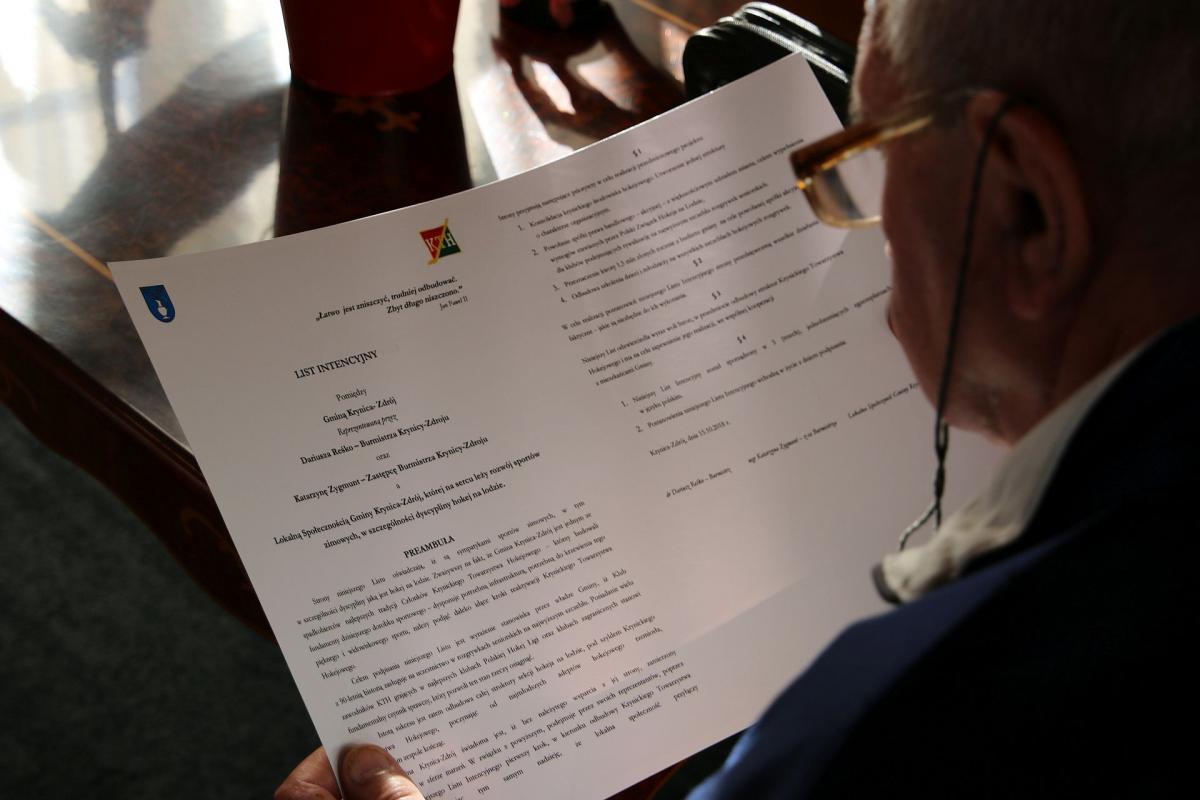 List intencyjny podpisał Dariusz Reśko Burmistrz Krynicy-Zdroju, jego zastępczyni Katarzyna Zygmunt oraz środowisko hokejowe.