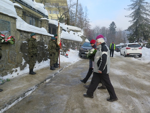 W poniedziałek, 21 stycznia odbyła się uroczystość upamiętniająca 74. rocznicę zakończenia okupacji w naszym mieście. O godzinie 10.00 przedstawiciele władz samorządowych, kombatantów, instytucji, stowarzyszeń oraz młodzież z Zespołu Szkół Ponadgimnazjalnych złożyli wiązanki kwiatów pod tablicą pamiątkową przy ul. Pięknej na budynku „Bajka”. Tam mieściła się siedziba i więzienie gestapo. Wszystkich zebranych powitała Magdalena Krzeszowska, dyrektor Biblioteki Publicznej, która była wspólnie z Centrum Kultury była organizatorem tej uroczystości. W wydarzeniu wzięli udział: Piotr Ryba burmistrz Krynicy-Zdroju, Julia Dubec-Dudycz dyrektor Centrum Kultury, przedstawiciele Związku Kombatantów RP i Byłych Więźniów Politycznych, członkowie Stowarzyszenia Miłośników Krynicy. Wartę honorową pełnili uczniowie Zespołu Szkół Ponadgimnazjalnych w Krynicy-Zdroju należący do 2 Plutonu Wsparcia - Krynica, pododdziału Samodzielnej Jednostki Strzeleckiej 2006 z Nowego Sącza, działającego w strukturach Związku Strzeleckiego „Strzelec". Młodzież z 2 Plutonu Wsparcia wniosła w uroczystym poczcie sztandar Związku Kombatantów RP i Byłych Więźniów Politycznych. Pododdział przybył pod dowództwem sierżanta Związku Strzeleckiego mgr inż. Radosława Repetowskiego. W ramach obchodów 74. rocznicy zakończenia okupacji hitlerowskiej odbył się także, w dniu 20. stycznia koncert Orkiestry Zdrojowej im. Adama Wrońskiego pod batutą Mieczysława Smydy, a na krynickim Deptaku, przed pomnikiem A. Mickiewicza jest prezentowana plenerowa wystawa przygotowana przez Bibliotekę Publiczną pt. OBRAZY CZASU WOJNY … Krynica 1939-1945. Uroczyste złożenie wiązanek kwiatów w hołdzie poległym i zamęczonym kryniczanom odbywa się od kilku lat. Choć uczestnicy tych wydarzeń nie mogą już brać w nim udziału, bo wielu odeszło lub są w złym stanie zdrowia, to organizatorzy uroczystości starają się by zachować i przekazać pamięć o ludziach i tych wydarzeniach kolejnym pokoleniom.