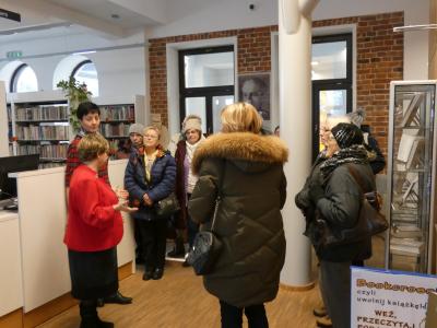 Wyjazd krynickich seniorów zorganizowany przez Bibliotekę Publiczną w Krynicy- Zdroju był także okazją do obejrzenia nowej, niedawno otwartej biblioteki w Gołkowicach i poznania jej oferty oraz możliwości, jakie daje nowoczesna przestrzeń. Udając się do Gołkowic, uczestniczki zwiedziły również siedzibę otwartej w ubiegłym roku Powiatowej i Miejsko-Gminnej Biblioteki Publicznej w Starym Sączu. Obydwa obiekty wzbudziły zachwyt swoją architekturą i funkcjonalnością. Ale najważniejsze jest to, że przyciągają coraz więcej czytelników i uczestników różnych wydarzeń. Obydwie biblioteki tętnią życiem, są nie tylko miejscem spotkań z książką, ale przede wszystkim miejscem spotkań mieszkańców, w różnym wieku i z różnych grup społecznych.