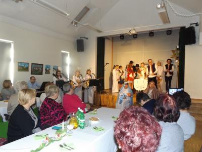 Panie z klubu seniorek „Jaworzynki” działającego przy bibliotece na osiedlu Czarny Potok, słuchaczki Uniwersytetu III Wieku oraz członkinie Stowarzyszenia „Aktywną Bądź” uczestniczyły w spotkaniu integracyjnym dla seniorów, które odbyło się 22 stycznia w Bibliotece Publicznej w Gołkowicach. Wzięli w nim udział także seniorzy ze Stowarzyszenia na Rzecz Rozwoju Jamnicy oraz Stowarzyszenie „Szafirki” z Gołkowic. Goście mieli okazję zobaczyć przedstawienie „Grupy Kolędniczej”, którą stworzyli Podopieczni Stowarzyszenia „Gniazdo” z Cyganowic wraz z uczniami z gminnych szkół pod czujnym okiem pani Danuty Hejmej. W trakcie spektaklu publiczność mogła przenieść się w cudowny czas minionych już Świąt Bożego Narodzenia słuchając pięknych kolęd. Wszyscy byli pod wrażeniem tego występu. Dużym zainteresowaniem cieszyła się także wystawa prac wykonanych przez Panie ze Stowarzyszenia „Szafirki”, przy której robiono pamiątkowe zdjęcia i dyskutowano na temat metody wykonywania niektórych dzieł.