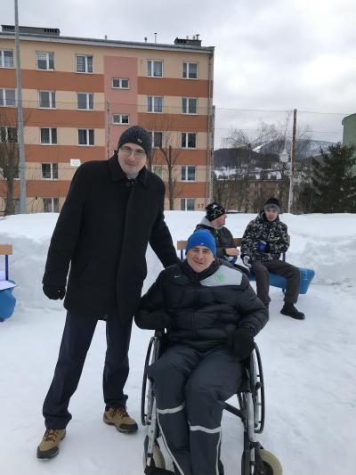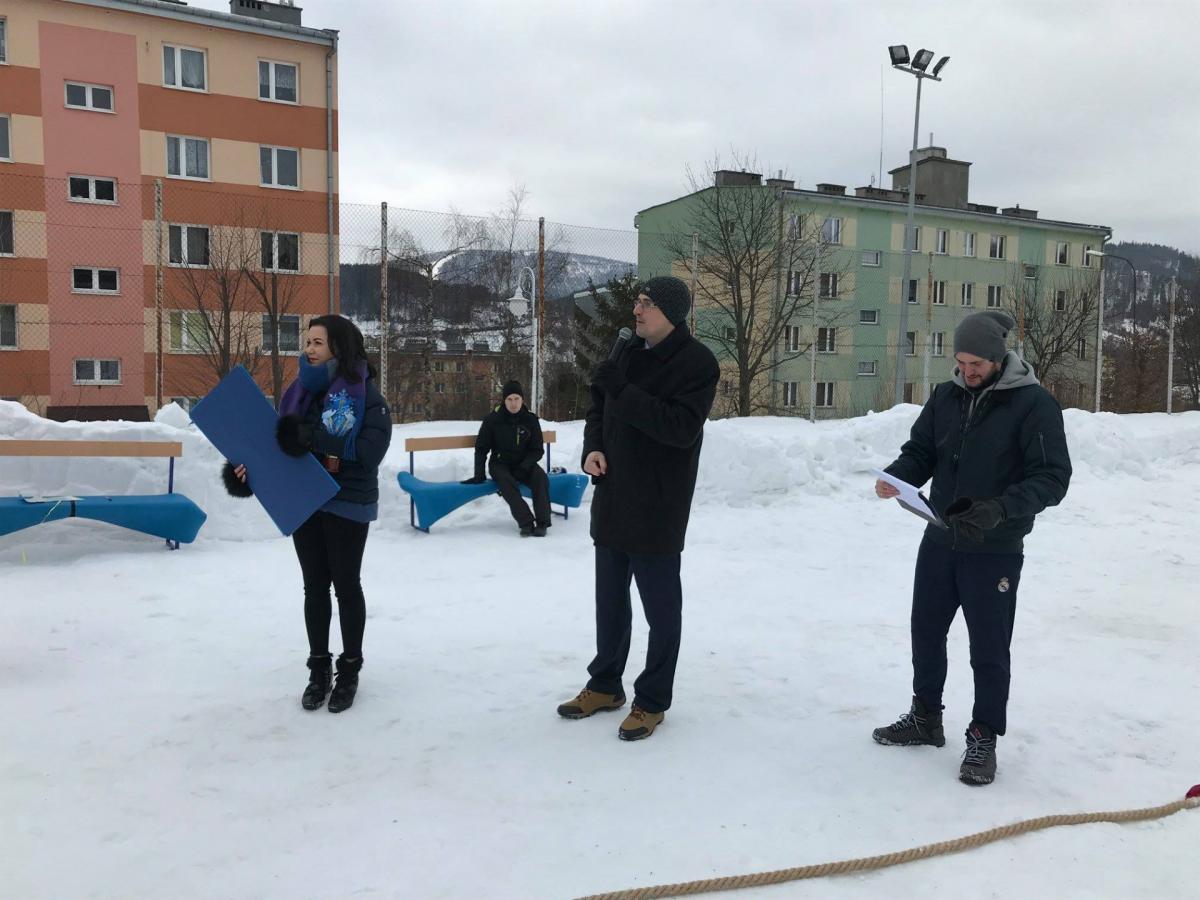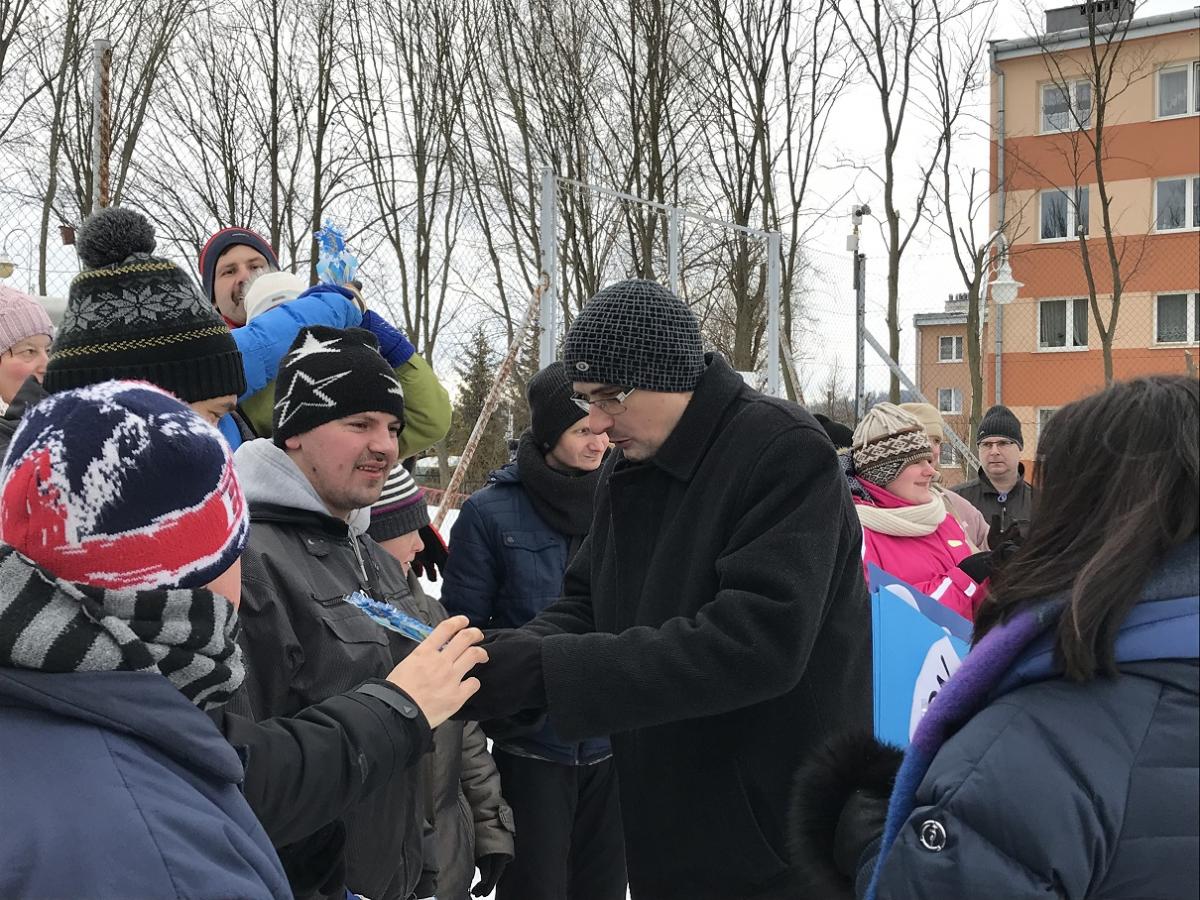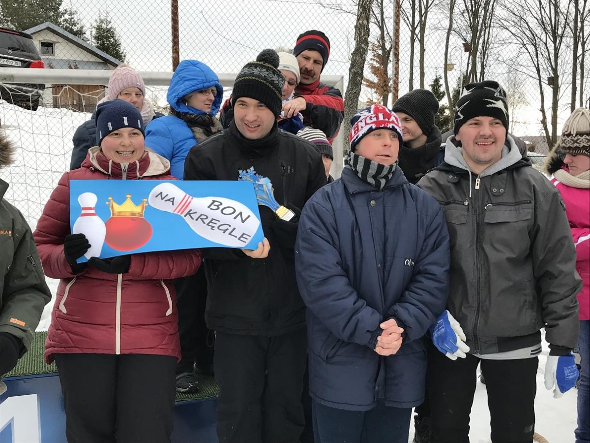 Na boisku sportowym przy Środowiskowym Domu Samopomocy w Krynicy-Zdroju odbyła się III Zimowa Spartakiada Osób Niepełnosprawnych w której wzięło udział prawie 80 uczestników niepełnosprawnych z 4 ośrodków: WTZ Nadzieja Nowy Sącz, ŚDS Nowy Sącz, POW Muszyna i gospodarze zawodów ŚDS Krynica-Zdrój. Uczestnicy rywalizowali w 5 konkurencjach: bieg przez labirynt, toczenie opony, rzucanie woreczkiem do celu, przeciąganie na sankach oraz przeciąganie liny. Najlepsi w drużynowej rywalizacji okazali się podopieczni ŚDS z Nowego Sącza, którzy po raz pierwszy gościli na zawodach – serdeczne gratulacje! Na koniec każdy ośrodek musiał rozwiązać łamigłówki, które doprowadzały do zakopanego pod śniegiem skarbu. Gościem specjalnym spartakiady był burmistrz Krynicy-Zdroju Piotr Ryba, który wręczał piękne puchary i medale w formie śnieżynki dla wszystkich zawodników. Ponadto główną nagrodą dla każdego ośrodka był bon na kręgle. Podczas zawodów nie zabrakło ciepłego napoju oraz poczęstunku, tak aby zwłaszcza goście z Nowego Sącza nieprzyzwyczajeni do zimy i mrozów mogli komfortowo brać udział w zawodach J. Po zakończonych konkurencjach, rozdaniu nagród i odnalezieniu skarbów wszyscy przenieśli się do budynku aby się ogrzać, wymienić na gorąco swoimi spostrzeżeniami i emocjami po zawodach, ale przede wszystkim aby zjeść smaczny obiad. Organizatorem zawodów był ŚDS z Krynicy-Zdroju przy współpracy z MOSiR oraz Centrum Kultury. Serdecznie dziękujemy wszystkim, którzy przyczynili się do tego by te zawody mogły się odbyć, ale przede wszystkim uczestnikom, którzy świetnie się bawili i pokazali prawdziwego ducha rywalizacji. Widzimy się za rok!