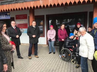 W piątek 1 marca nastąpiło oficjalne odebranie nowego samochodu Renault Trafic przystosowanego do przewozu osób niepełnosprawnych, który zapewni jeszcze większy komfort podczas jazdy oraz ułatwi mobilność i pomoże w zwiększeniu aktywności podopiecznych Środowiskowego Domu Samopomocy w Krynicy-Zdroju. Burmistrz Krynicy-Zdroju Pan Piotr Ryba uroczyście przeciął czerwoną wstęgę, a następnie uczyniła to dyrektor ośrodka Pani Karolina Aleksander. Jak widać po zdjęciach chętnych do prowadzenia pojazdu nie brakuje, także o kierowców jesteśmy spokojni. Samochód zakupiono dzięki uzyskanemu dofinansowaniu ze środków PFRON w wysokości 80.000,00 zł. wkład własny w kwocie 44.600,00 zł. pochodził ze środków Gminy Krynica-Zdrój.