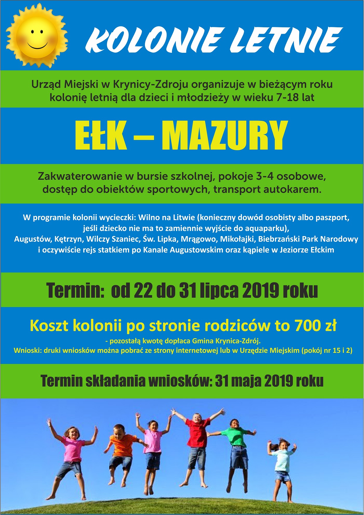 Kolonia letnia 25.04.2019 14:10 Treść Formularz wniosku do pobrania>> Informacja pod numerem telefonu 18 4725548 od poniedziałku do środy w godzinach 7:00-15:00 Facebook Twitter Email Drukuj