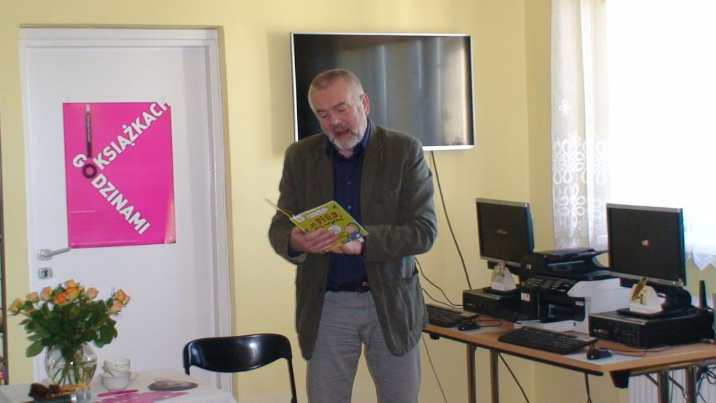 12 maja w filii krynickiej biblioteki w Tyliczu odbyło się niezwykłe spotkanie z Marcinem Brykczyńskim, który z wykształcenia jest ekonomistą, a z zamiłowania pisarzem i poetą. Autor licznych książek dla dzieci, wśród których znajdują się m.in. „12 kolorów”, „Alfabestia”, „Czarno na białym”, „Czary”, „Ni pies, ni wydra”, „Z deszczu pod rynnę”, „Liczydełko” itp. Ten niezwykle sympatyczny i otwarty człowiek, sprawił, iż takiego charakteru nabrało samo spotkanie, w którym wzięły udział dzieci z Publicznego Przedszkola oraz Ochronki w Tyliczu. W trakcie spotkania Pan Marcin nie tylko opowiadał przedszkolakom o swojej twórczości, ale również czytał i recytował wiersze, prezentował napisane przez siebie książeczki oraz opowiadał anegdoty z czasów swojego dzieciństwa.