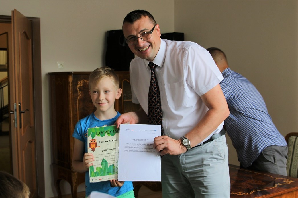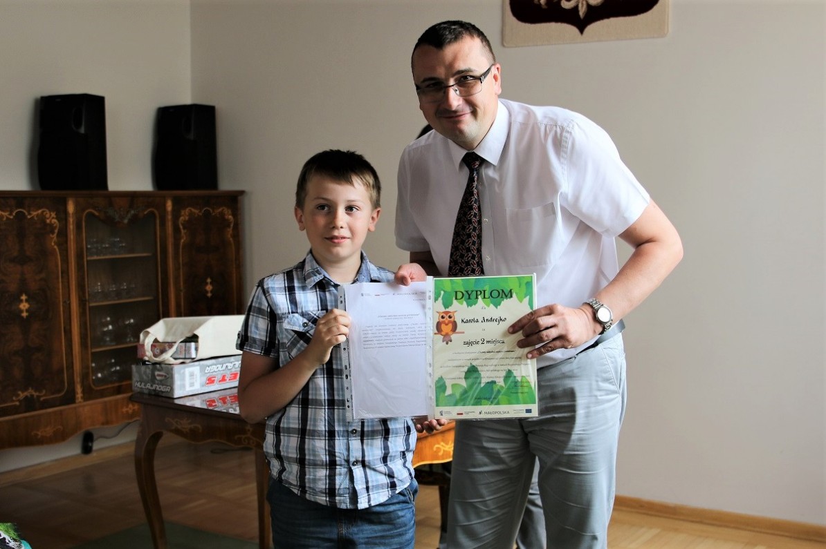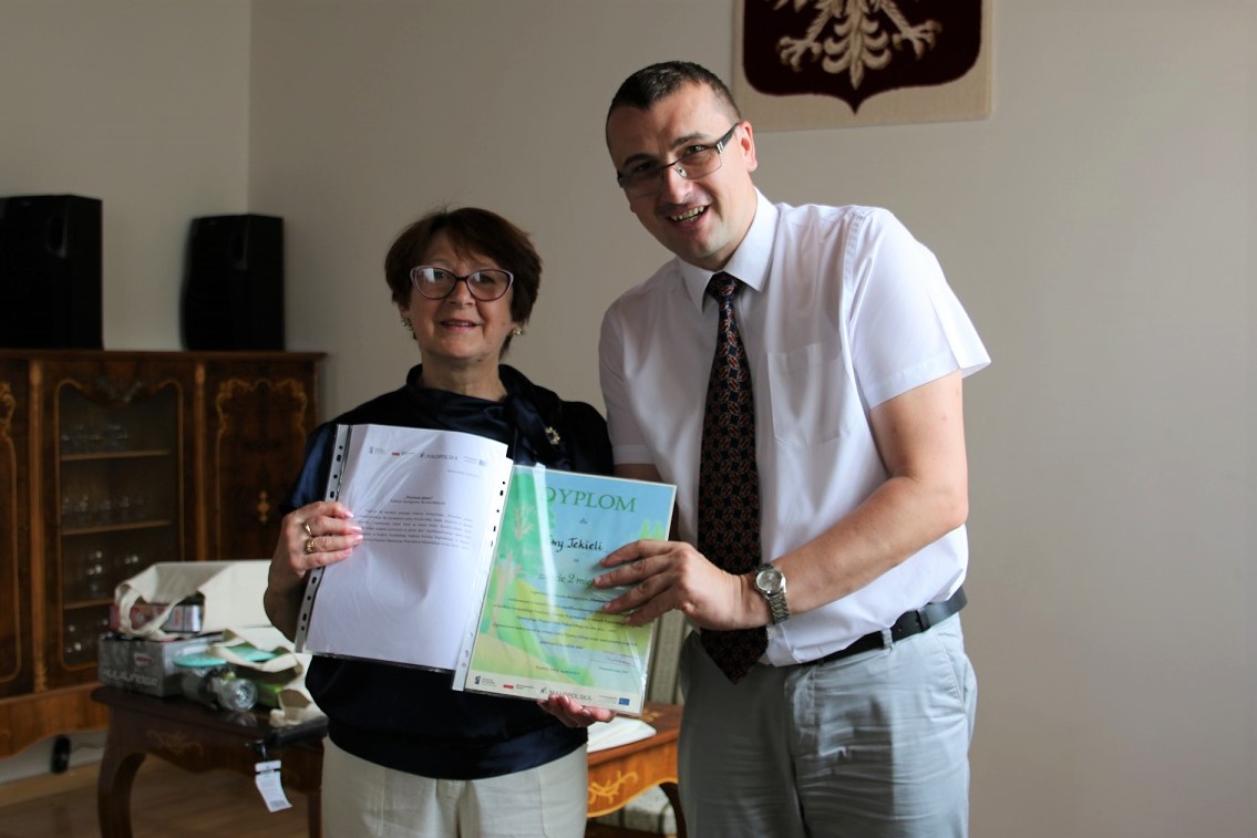 Burmistrz Krynicy-Zdroju wręczył dziś nagrody zwycięzcom konkursu "Wierszem pisane” oraz "Chcemy oddychać czystym powietrzem" realizowanych w ramach projektu nr RPMP.04.04.03-12-0211/17 pn.: „Ograniczenie niskiej emisji na terenie gminy Krynicy-Zdroju przez zastosowanie urządzeń grzewczych na paliwa stałe” w ramach Regionalnego Programu Operacyjnego Województwa Małopolskiego na lata 2014-2020.