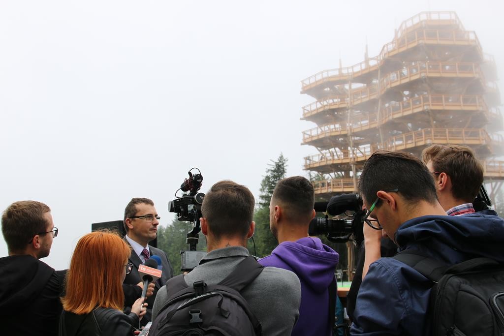 Dziś Wieża widokowa Krynica Zdrój i Moja Krynica uroczyście zainaugurowały działalność ścieżki widokowej w koronach drzew oraz współpracę dotyczącą wspólnych działań promocyjnych. List intencyjny pomiędzy spółką Słotwiny Arena a Gminą Krynicą-Zdrój podpisali Członek Zarządu Maciej Szymański oraz Burmistrz Krynicy-Zdroju Piotr Ryba, w obecności pomysłodawcy i właściciela inwestycji Sławomira Rusinka, posła Marka Sowy a także przedstawicieli krynickiej rady miejskiej, duchowieństwa oraz reprezentantów firm i przedsiębiorstw i licznie już odwiedzających wieżę turystów.
