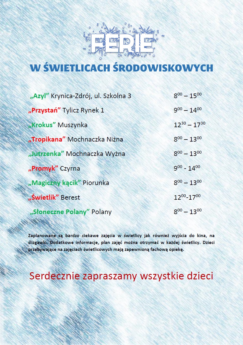 Plan zajęć w czasie ferii zimowych w świetlicy w Krynicy-Zdroju>>