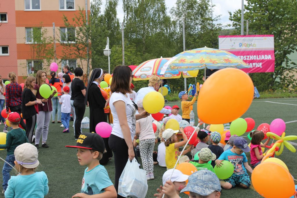 Przedszkoliada zorganizowana została w konwencji stanowisk animacyjnych, gdzie przeplatały się zabawy sportowe z animacjami (3 stacje po 3 stanowiska każda, zabawy z chustą Klanzy, trampolina, malowanie twarzy, animacje w wykonaniu firmy Animaniak z Nowego Sącza). Zadaniem dzieci było sumienne pokonywanie przygotowanych torów przeszkód, a nagrodą pieczątki przybijane przez pilnujących porządku wolontariuszy. Rozegrano również zawody o Puchar Piątki, gdzie przedszkola rywalizowały w konkurencji celnego rzutu woreczkiem do tarczy strzelniczej.