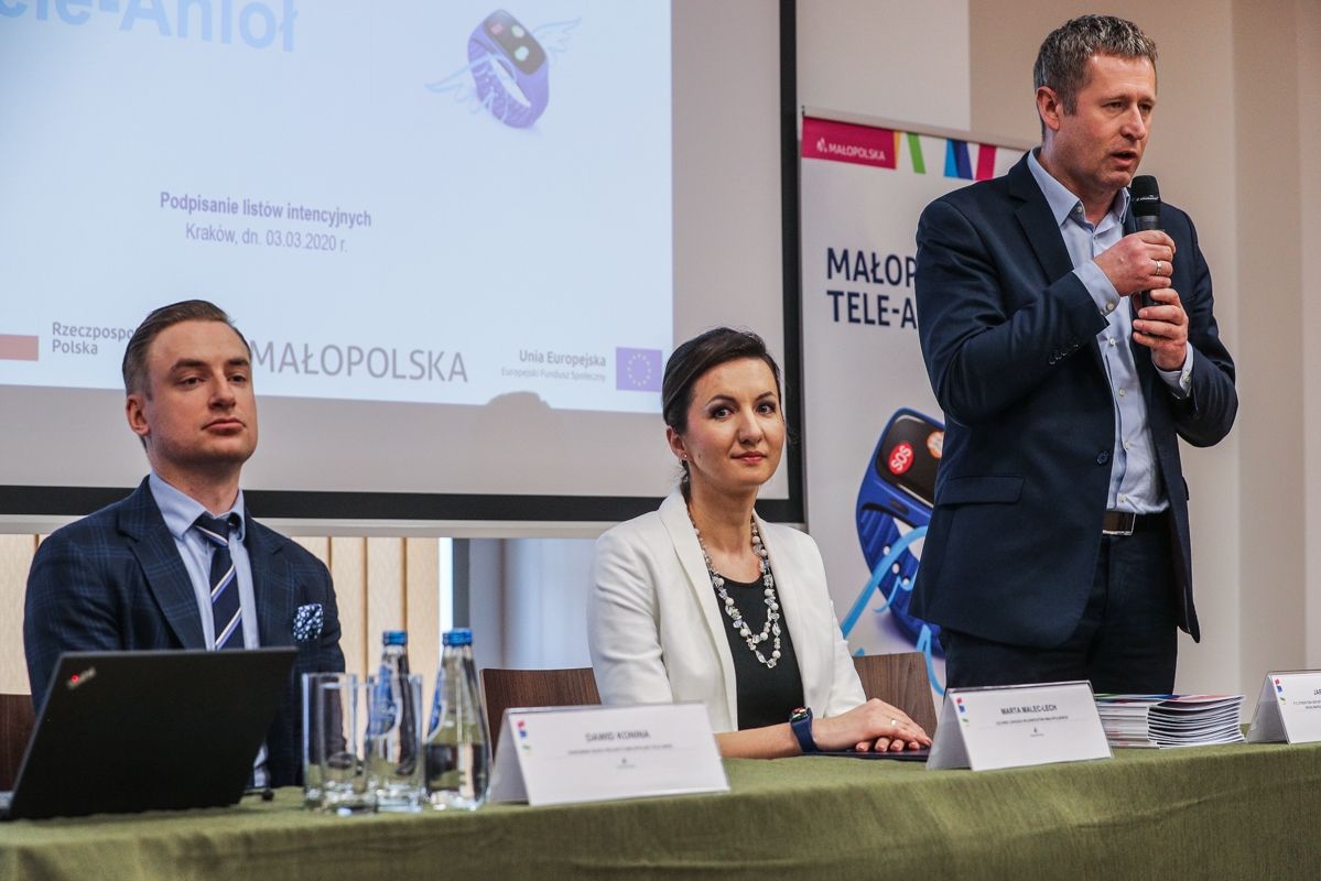W dniu 04 marca 2020 roku w Centrum Konferencyjno-Szkoleniowym Szpitala im. Jana Pawła II w Krakowie Dyrektor Ośrodka Pomocy Społecznej w Krynicy-Zdroju w imieniu Burmistrza Krynicy-Zdroju uczestniczył w uroczystym podpisaniu listu intencyjnego wspierającego dalszą realizację projektu „Małopolski Tele-Anioł”. W spotkaniu wzięła udział Marta Malec-Lech z zarządu województwa oraz 13 przedstawicieli małopolskich powiatów i gmin, którzy dołączyli do projektu.