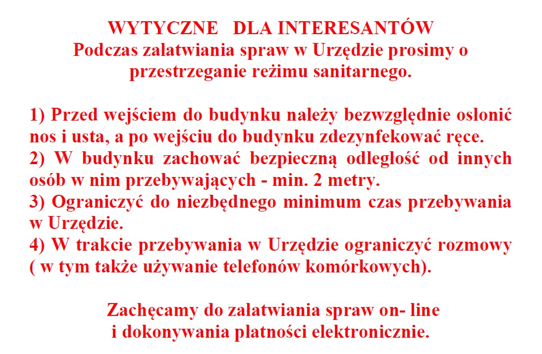 Wytyczne dla interesantów podczas załatwiania spraw w Urzędzie 25.08.2020 13:59 Treść Facebook Twitter Email Drukuj