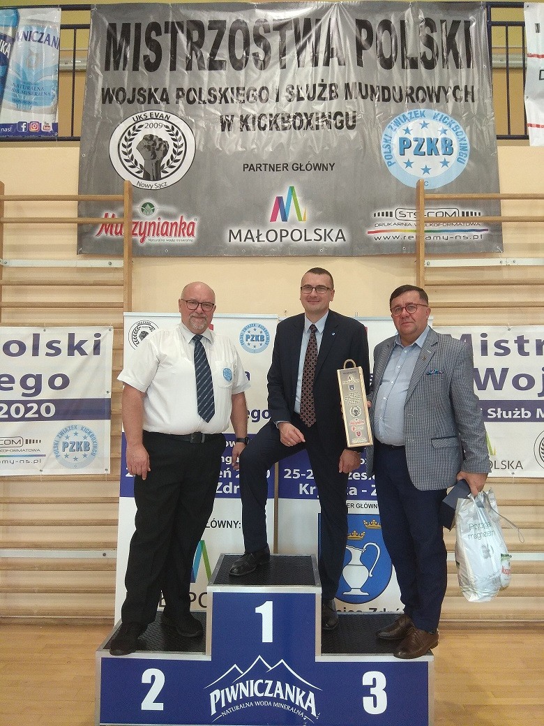 W dniach 25-27.09.2020 roku w Krynicy-Zdroju odbyła się dziewiąta edycja Mistrzostw Polski Wojska Polskiego i Służb Mundurowych w kickboxingu w której wystartowało 195 zawodników i zawodniczek z 65 formacji mundurowych z naszego kraju. UKS Evan reprezentowały policjantki Ewa Bulanda (3 złote krążki) i Teresa Baldowska (dwa srebne medale). Niespodziankę sprawił nam generał Jarosław Gromadziński, który odwiedził nas w piątek i w naszym sportowym gronie obchodził trzydziestolecie wstąpienia w szeregi Wojska Polskiego (podziękowania dla pana Darka Mikulskiego z Cichego Kącika za super obsługę). Padło kilka sportowych propozycji co do organizacji naprawdę dużych wyzwań sportowych... ale nie wychodzimy przed szereg i czekamy na oficjale ogłoszenie decyzji dając czas naszym sądeckim parlamentarzystą i notablom na lobbowanie aby impreza pozostała w małoposce. Ukłony w kierunku tych instytucji i osób, które realnie wsparły nasze działania a należą do nich marszałek Witold Kozłowski, burmistrz Krynicy-Zdroju Piotr Ryba, V-ce prezes PZKB Jerzy Bassa, Muszynianka, Piwniczanka, Poprad krynickie hotele Panorama i Saol, drukarnia STS-COM, Panorama-Sport, maltańczycy z Nowego Sącza, Grand, Regnis.