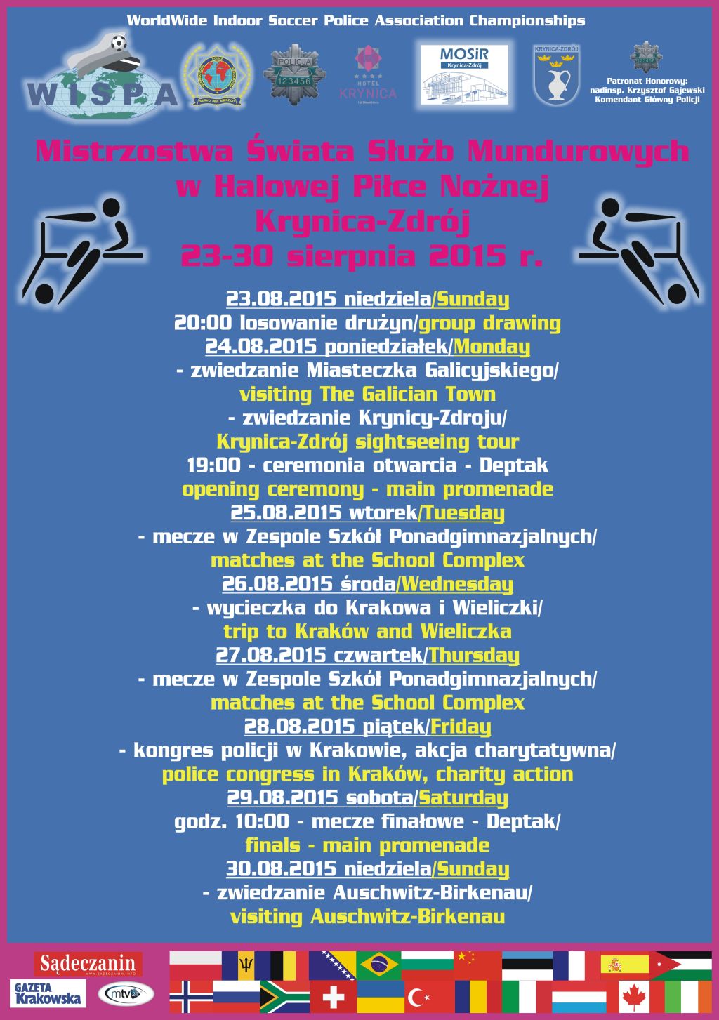 Oprócz części sportowej organizatorzy zapewnili uczestnikom zwiedzanie Krynicy-Zdroju, Miasteczka Galicyjskiego, Krakowa, Wieliczki oraz Oświęcimia. Ponadto uczestnicy wezmą udział w jednio dniowym Seminarium na temat „Bezpieczeństwo w przestrzeni publicznej”, które odbędzie się w Komendzie Wojewódzkiej Policji w Krakowie.