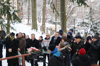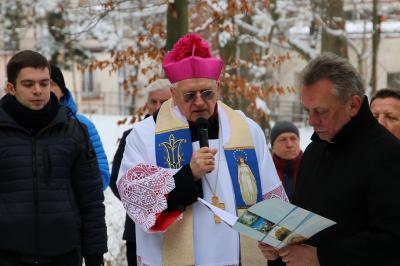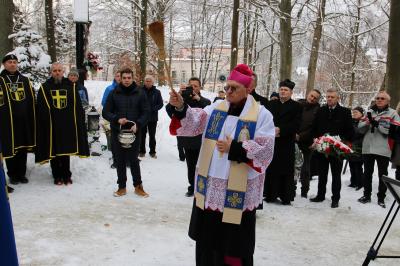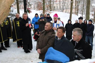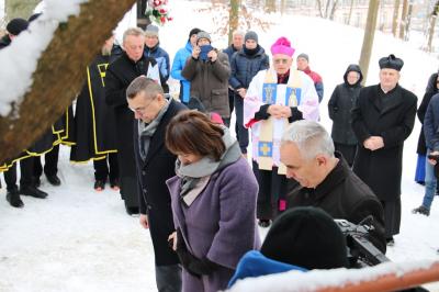 W uroczystości poświęcenia oraz odsłonięcia pomnika wzięli udział abp Henryk Nowacki, ks. Andrzej Liszka - proboszcz Parafii Wniebowzięcia Najświętszej Maryi Panny w Krynicy-Zdroju, przedstawiciele Społecznego Komitetu Budowy Pomnika: burmistrz Piotr Ryba, Agata Jarosz, Piotr Szyszka, Zdzisław Skwarek; przewodnicząca Rady Miejskiej w Krynicy-Zdroju Irena Weber-Grelecka oraz mieszkańcy Krynicy-Zdroju.