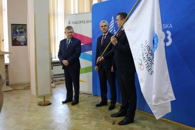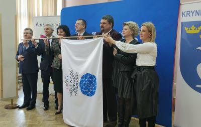 Dziś, 20 lutego, w Krynicy-Zdroju odbyło się uroczyste przekazanie oficjalnej flagi Igrzysk Europejskich Burmistrzowi Krynicy-Zdroju Piotrowi Rybie