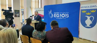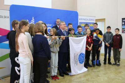 Uroczyste przekazanie flagi Igrzysk Europejskich Burmistrzowi Krynicy-Zdroju