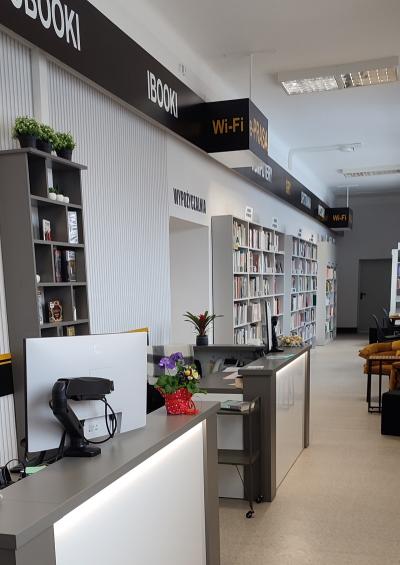 Cieszymy się, że biblioteka już działa. Bardzo dziękujemy osobom zaangażowanym od samego początku w przeniesienie księgozbioru, przygotowanie lokalu i urządzenie go: władzom miasta, pracownikom Urzędu Miejskiego, wolontariuszom i oczywiście pracownikom biblioteki. Miło nam słyszeć i czytać w mediach społecznościowych pozytywne opinie na temat wyglądu biblioteki. Włożyliśmy w to dużo zaangażowania, pracy i serca. Staraniom również wielu innych osób zawdzięczamy to, że biblioteka jest nowoczesna i funkcjonalna. Nowe regały, meble, instalacje i prace budowlane wykonali pracownicy grupy komunalnej Urzędu Miejskiego. Znaleźli się także darczyńcy, którzy zakupili wyposażenie do Strefy Młodego Człowieka – m. in. kolorowe pufy, teatrzyki i elementy dekoracji dla dzieci.