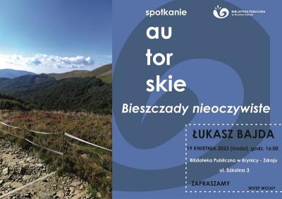 Zapraszamy na spotkanie z Łukaszem Bajdą – autorem książek o Bieszczadach, przewodnikiem beskidzkim i historykiem. Spotkanie odbędzie się w Bibliotece Publicznej, przy ul. Szkolnej 3, w środę 19 kwietnia o godz. 16.00. Autor, dr nauk humanistycznych pisze o przeszłości i atrakcjach turystycznym województwa podkarpackiego. W swoim dorobku ma m. in. publikacje: „Bieszczady. Opowieści przewodnika”, „Bieszczady. To, co najważniejsze”, „555 zagadek o Bieszczadach”, „Baligród – historia bieszczadzkiego miasteczka”, „Balowie. Z bieszczadzkich lasów na salony Krakowa i Lwowa”, „Szlachta w Bieszczadach i na Pogórzu”. Po spotkaniu będzie możliwość zakupu książek z autografem autora.