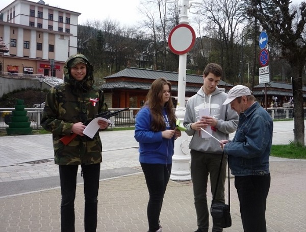 12 kwietnia na krynickim deptaku Paweł i Dawid zorganizowali happening, który miał przybliżyć mieszkańcom i turystom historię krynickiego bohatera oraz miejsce symbolicznego grobu. Uczniowie przygotowali ulotki z mapką. Przy piosence „Kocham Wolność” śpiewanej przez koleżanki opowiadali historię Leona Stasickiego oraz zachęcali do zapalenia znicza na nagrobku.