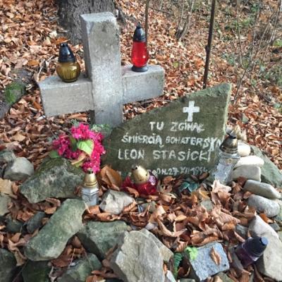 -Wśród wielu obiektów, które mogły być przedmiotem naszego projektu, wybraliśmy tajemniczy grób u stóp Góry Parkowej- wspomina Paweł- Jest on poświęcony Leonowi Stasickiemu, który jak głosi kamień na nagrobku „27 XII 1944 r. zginął śmiercią bohaterską”.