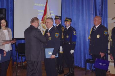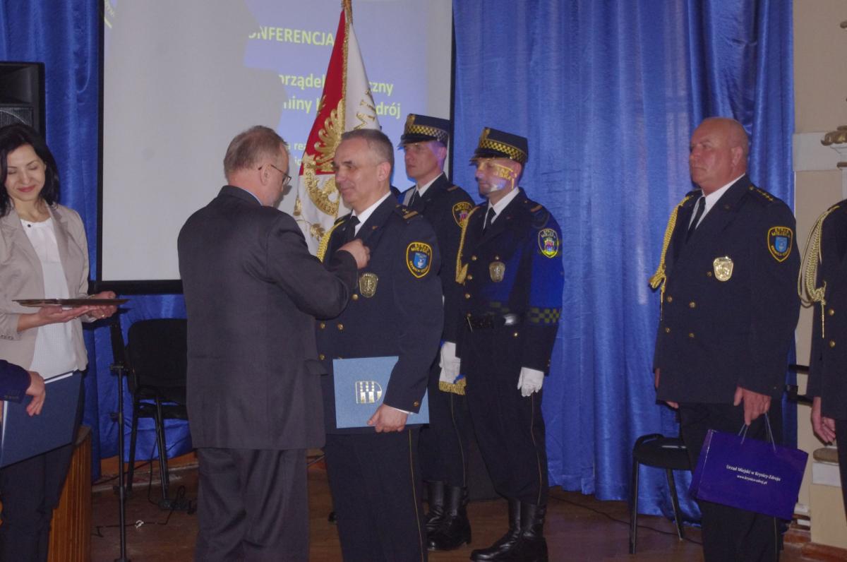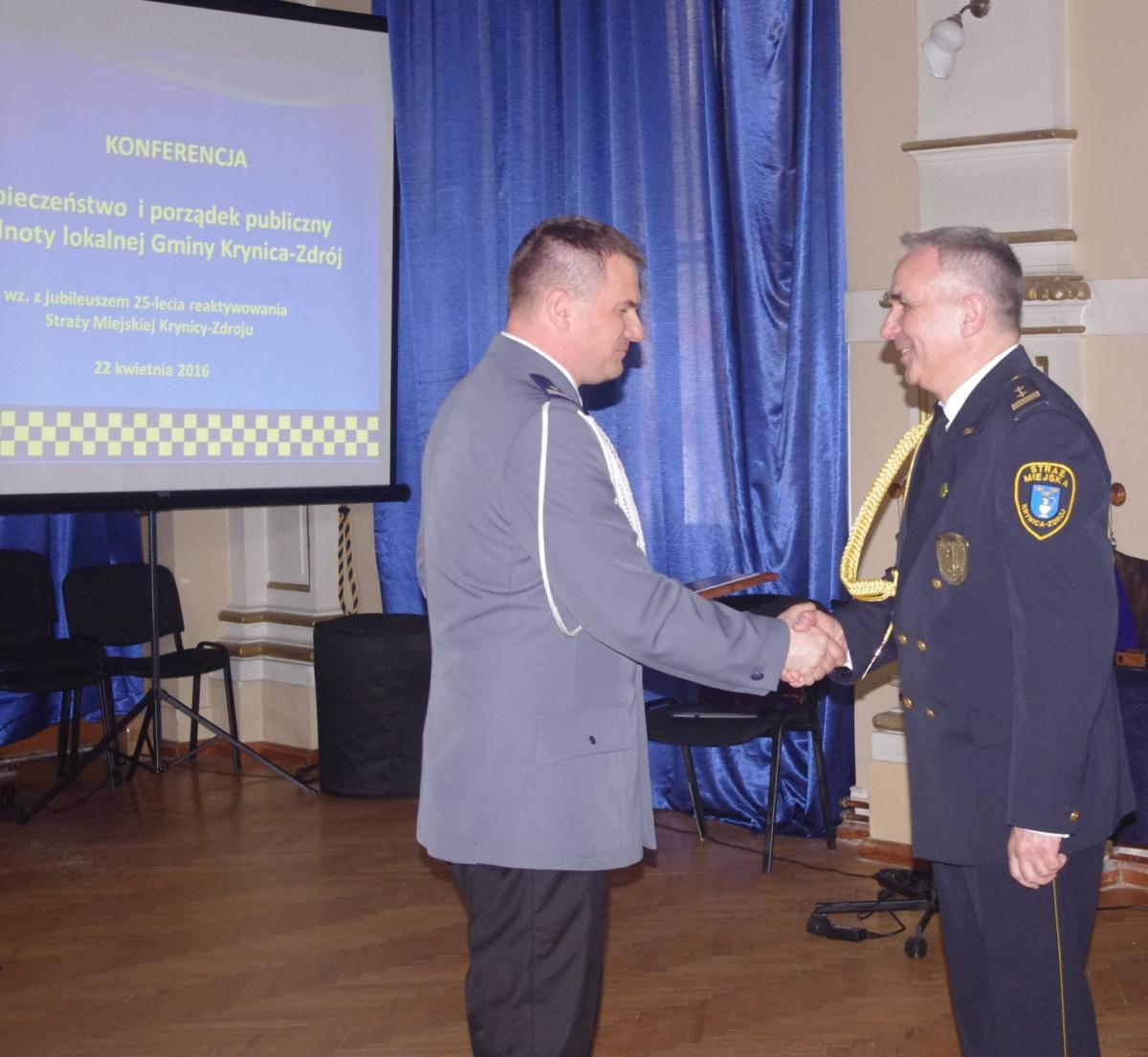 Obchody jubileuszu strażnicy i goście rozpoczęli Mszą św. w kościele zdrojowym, a następnie przemaszerowali za pocztem sztandarowym zaprzyjaźnionej Straży Miejskiej Miasta Krakowa do Sali Balowej Starego Domu Zdrojowego, gdzie odbyła się Konferencja „Bezpieczeństwo i porządek publiczny wspólnoty lokalnej Krynicy-Zdroju”. Po otwarciu Konferencji przez burmistrza Krynicy-Zdroju dra Dariusza Reśko, pierwsza cześć zawierała trzy wystąpienia. W pierwszym p. Artur Hałubiczko prefekt Krajowej Rady Komendantów Straży Miejskich i Gminnych RP, komendant Straży Miejskiej Częstochowy przedstawił krótką historię oraz dzisiejszą sytuacje straży miejskich w Polsce. Następnie, dr Jan Golba, burmistrz Muszyny zaprezentował na tle historycznym istotę i potrzebę funkcjonowania samorządowej formacji porządku publicznego, jaką jest obecnie straż miejska. Ostatni prelegent Piotr Szyszka, komendant Straży Miejskiej w krynicy-Zdroju przedstawił historię przedwojennej i współczesnej straży miejskiej oraz zadania jakie straż podejmuje na rzecz porządku publicznego dla dobra społeczności lokalne.