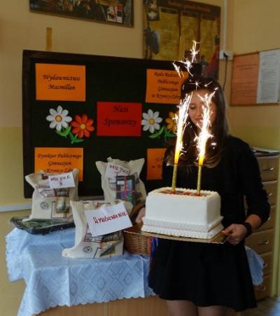 - Wydaje się to niewiarygodne, ale jednak to prawda! Już pięć lat minęło odkąd po raz pierwszy zrodził się w naszych głowach pomysł na realizację tego gimnazjalnego projektu. W tym roku odbyła się już piąta, jubileuszowa edycja Konkursu Wiedzy o Zjednoczonym Królestwie, dlatego nie mogło zabraknąć tortu z fajerwerkami oraz wspaniałych gości. Ogromny tort z flagą Wielkiej Brytanii przyniósł nam na tę okazję przewodniczący Rady Rodziców, pan Łukasz Obiorek, a gościem honorowym był Burmistrz Krynicy-Zdroju, dr Dariusz Reśko, który wręczył zwycięzcom nagrody- powiedziała Anna Homa nauczycielka języka angielskiego, inicjatorka i główna organizatorka tego cieszącego się wśród uczniów szkół podstawowych coraz większą popularnością konkursu.