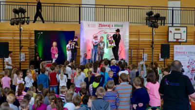 W przedstawieniu obfitującym w konkursy z wiedzy ekologicznej udział wzięli udział uczniowie szkoły i przedszkolaki, przedstawiciel operatora projektu - Magdalena Cholewa i Dyrektor Zespołu Obsługi Szkół i Przedszkoli - Grzegorz Jarecki. Ambasadorami projektu prowadzącymi ekologiczne „Zabawy z klasą” są: aktywna mama - Justyna Tomańska, wokalista - Mariusz Totoszko oraz Eko robot „Paluszek” stworzony przez Konrada Czarkowskiego „KONY-ego” (lalkarza medialnego, finalistę polskiej i brytyjskiej edycji „Mam Talent”). Po przedstawieniu odbyła się konferencja prasowa, podczas której omówiono założenia akcji. Wszystkie placówki oświatowe, które zalogują się na stronie www.zbierajzklasa.pl i przystąpią do projektu zbierając baterie i elektrośmieci, zbierają na swoim koncie punkty, a te z kolei wymieniają na cenne nagrody. Są nimi m.in. e-karty do sklepu empik.com. Ci, którzy zgromadzą największą ilość punktów do marca przyszłego roku będą mieli szansę wygrać wycieczki edukacyjne (m.in. camping na Słowenii od Vacansoleil, wyjazd do JuraParku w Bałtowie lub do Farmy Iluzji w Trojanowie). Wielki finał, połączony z koncertem gwiazd, z udziałem dzieci i młodzieży planowany jest na kwiecień 2017 r.